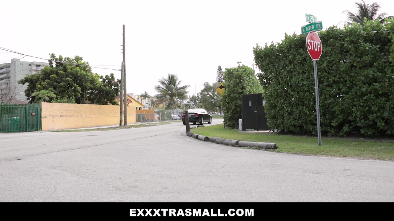 When Paris White finds out that our stud is moving out of his house, she needs to fuck him one more time before he leaves. This tiny blonde slut loves his fat dick so much, letting him go without one more pussy pounding would be a sin. So, she hides in his trunk, perking her ass and cunt out so that he can slam her silly. He s his massive meat into her tight teen twat and gives her a ramming to remember. Then, he picks her up and fucks her mid air. That is quite a maneuver! The only thing left is for Paris to take a nice steamy load, and she does with pleasure. Looks like this chick got the last ride she was hoping for.