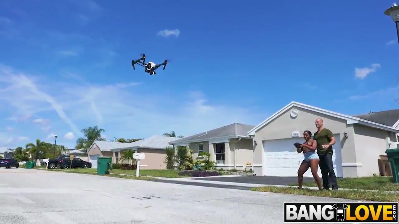 Sean and Nyna were playing with their drone, and accidentally crashed into the next house backyard, so they knocked on their neighbor's door a cranky, grouchy old lady came out, she showed them a no trespassing sign and kicked them out. Now, Nyna wants her drone back so she decides to defy her neighbor and sneak in with Sean into the backyard, Sean finds the drone and wants to leave as fast as possible but suspense and risk makes Nyna horny, she wants a quicky right there, so she starts blowing Sean, he is super nervous that is completely crazy but he cannot say no to Nyna, so he fucks her doggy style, then missionary then cow girl until he explodes delivering a huge hot load all over Nyna's face.