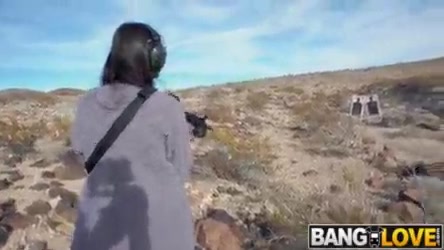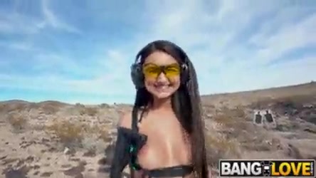 Eliza Ibarra is one of the hottest chicks in the business today. Her and her boyfriend went on a Las Vegas vacation and decided to film it. They went to the middle of the desert for Eliza to have a little bit of fun. She got to shoot several different weapons at targets. Trying weapon after weapon and stripping down with each new weapon. Watching her perfect naked body shooting guns is a sight to see. After getting horny from shooting, she moved on to a new weapon, her boyfriends cock. She sucked him to completion in the middle of the desert. Finally, they returned to their hotel for more fun. They fucked all over their hotel room. Eliza got her pussy stretched in several different positions.