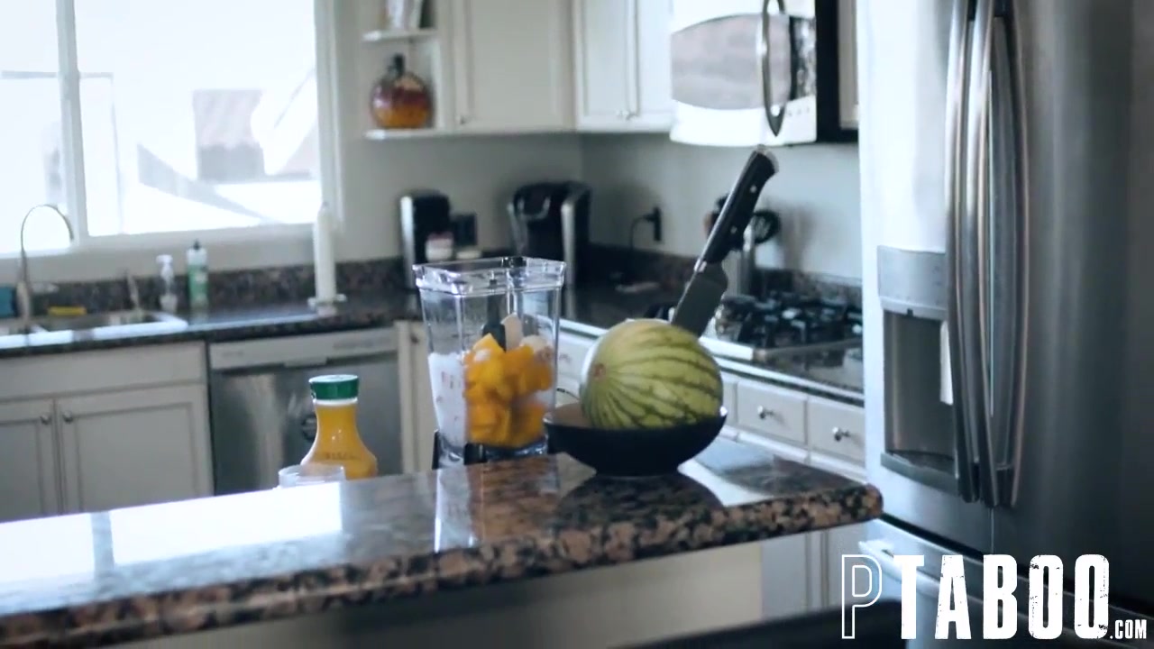 SCENE OPENS ON Madison (Eliza Ibarra). She is in her kitchen, making a smoothie. She pours fruit juice over the ice cubes in the blender. Her moves are very graceful and purposeful. She is about to turn the blender on when her doorbell rings. She looks as if she's not expecting anyone. She wipes her hands on a nearby hand-towel and leaves to go answer the door.