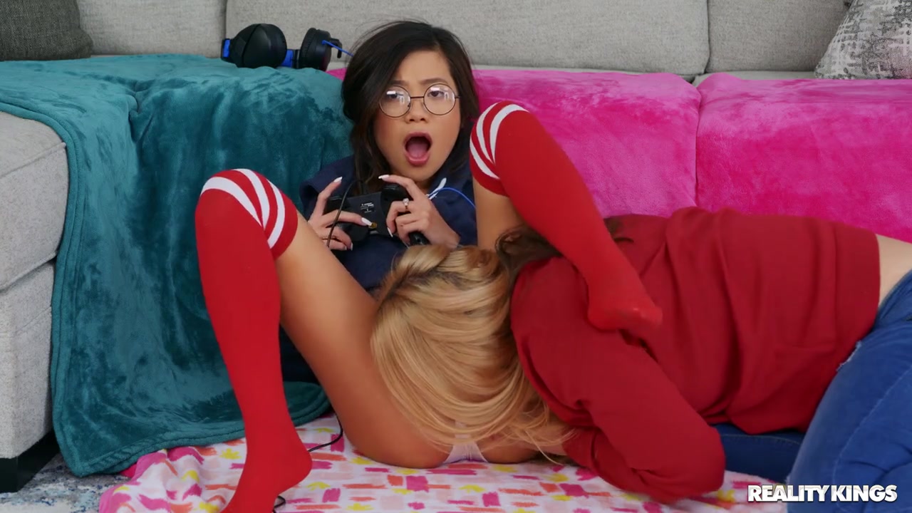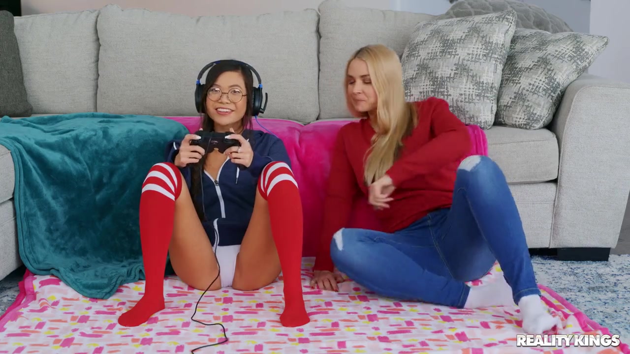 Have you ever wanted to see Vina Sky rock an adorable nerd look? Playing video games in glasses and knee-high socks but with that classic Vina sass? Well buckle up, viewers, because you’re about to get it full on! And Vina’s about to get it on, too! With the hot, blonde, and aggressive MILF: Sarah Vandella. With Vina completely ignoring Sarah in favour of her games, Sarah pulls Vina’s panties to the side and starts playing with her pussy, fingering her and licking her clit with her ass in the air - putting her in whatever position she needs to get herself soaking wet. Finally, Vina’s got to put that controller down and get a sloppy mouthful of her stepmom’s big tits. The girls eat each other’s pussies in the living room, 69 and scissor until they can’t take another drop of each other. You won't want to miss this one, trust me. I know.