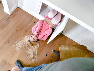 Cute little Kenzie Reeves could not be more excited to get dicked the fuck out today while dancing and prancing around the beautiful, sunny backyard. She finally heads inside to meet our stud who is waiting with a hard cock and a hunger for tight, young pussy. He pulls her shorts down in the kitchen and sticks his thick prick inside her for some intense twat reaming. Then, they move to the living room where Kenzie shows off her flexibility, doing a full split onto our studs throbbing dong. She bounces on his dick until he is ready to burst, and she gets down on her knees to take a gooey cum facial. With gymnastic skills like Kenzies, it is no wonder she knows how to work a pole so well!