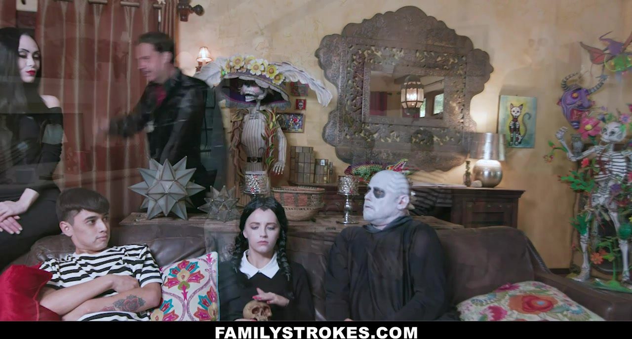 Audrey Noir and Kate Bloom Addams Family Orgy - Family Strokes Hd