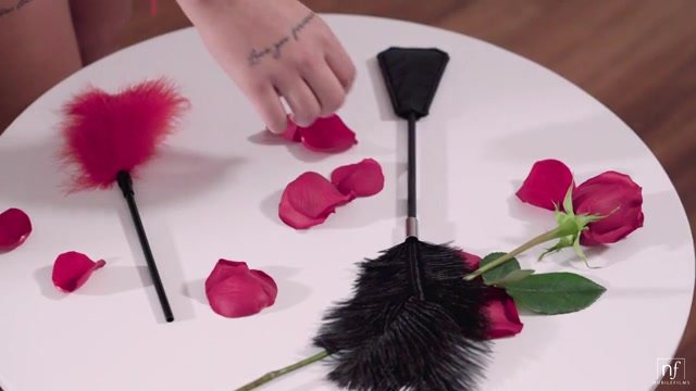 Hot little Latina Gina Valentina is ready to make Oliver Flynn drool. He sits in a chair, tied up and blindfolded, as Gina takes stock of all the various implements of pleasure at her disposal. She starts with a rose, brushing it along Oliver's neck and chest. Then Gina moves on to a feather, followed by a small whip. Since all Oliver can do is let the feelings wash over him, he has no choice but to go with the flow. That's okay; Gina doesn't leave him wanting for too long. Sliding her hands down Oliver's chest, Gina works her way down until she reaches the bulge beneath his shorts. She runs her tongue up the silk, then pops her treat out to enjoy fully. Soon enough, Gina is sucking to her heart's content in a languorous BJ.When Oliver is free to use his hands, he immediately reaches forward to grasp Gina's ass. Her bottom fills his palms as he kneads the globes while capturing a kiss from Gina's soft lips. As Oliver's hands reach up further to cup Gina's breasts and fondle her puffy nipples, Gina takes a seat on his lap so she can grind herself against Oliver's hard cock.Sliding her thong aside after enjoying her butt rub, Gina sinks down onto Oliver's fuck stick. Her meaty pussy gobbles up Oliver's cock as he uses his hands to help her set a breakneck pace. Turning around, she gives Oliver some reverse cowgirl action that gets even faster and more furious.Finally Gina removes the blindfold and frees Oliver, which lets him swap places with her. Sitting in the chair, Gina spreads her thighs and lets her had fall back in delight as Oliver samples her pussy juices. Only after he has licked every inch of her twat does she get on her hands and knees so Oliver can deliver a doggy style pussy pounding that won't stop until Gina's whole body is throbbing in delight. Gina's orgasm brings Oliver to the end of his endurance. Moments later, he pulls out to cover Gina's ass in his cum. He slides back in to give her a few more strokes of bliss, then finally draws Gina in to pepper her with kisses as they come down from their mutual climaxes.