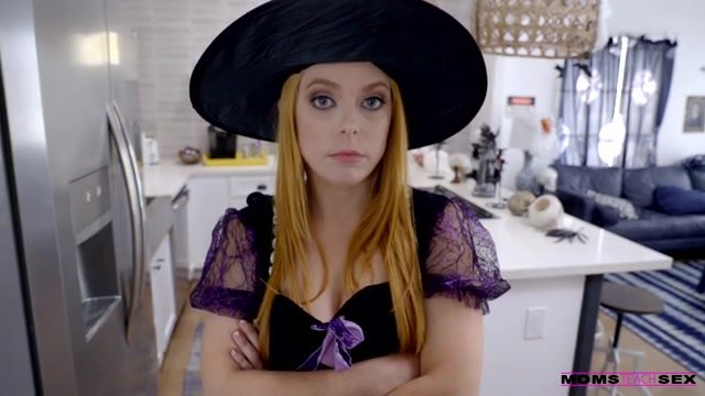 It's Halloween time and Penny Pax is hanging out with her adopted daughter Haley Reed in their costumes. Haley asks her stepbrother, Codey Steele, where his costume is. He tells her that he'll put the costume on later but for now he has something else she wants. Little does Haley know as she reaches into the candy bowl that Codey is holding that his dick is in there. Haley is initially pissed, but then she gets the bright idea that Codey should prank his stepmom with the same joke. Irritated at Codey, Penny calls her husband Chris Valiant in to discipline his son. Chris puts Codey in the corner and tells him to stay there with his dick out as punishment until he loses his boner.Haley isn't done with Codey yet. She taunts Codey as he stands in the corner, flashing her perky little titties at him to get his dick hard. Her hands are everywhere on her body as she teases Codey to keep him rock hard. Haley waits until she hears Penny coming back, then runs away to stay out of trouble. Frustrated that Codey's punishment isn't working, Penny tries whipping out the big guns as she pops her big jugs out of her costume and shakes them around since Codey surely can't be attracted to his mom's boobs. Turning around, Penny wiggles her ass at Codey. She can't figure out why he still has a boner, so she leads him into the living room by his cock. Then Penny calls Haley in to help her finish Codey off since Haley is the one that started it.With Penny's instruction, Haley reluctantly starts sucking her brother's dick. Penny joins in for a double BJ. Codey remains hard as a rock, which leads Penny to insist that Haley get on her hands and knees so Codey can fuck her doggy style. Mom isn't about to let her kids have all the fun, though, so she hops aboard Codey's fuck stick to ride him as Haley and Codey both delight in Penny's bouncing knockers. Penny winds up on her back with Haley riding her face and Codey banging her fuck hole. Since Haley began this mess, Penny insists that Haley be the one to help Codey finish it. She gets Haley on her back and then helps make sure Codey is ready to bust a nut all over his adopted sister's stomach to finally get rid of his boner. The girls take a few moments to play with Codey's jizz before Penny informs him that he'd better get cleaned up.