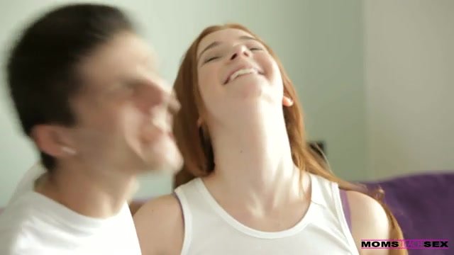 Ava, her boyfriend Jake, and her stepmom Syren all return after winning her away soccer game. They are all so proud of Ava's talent and success. Syren takes a quick shower to clean up so they can all go out and celebrate. However Jake has other plans, he wants to celebrate by having a quick fuck with Ava while her stepmom is in the shower. They start to makeout and Ava is in the middle of sucking cock when her stepmom comes out catching them in the act. Syren gives a scolding but then goes on to teach Ava the proper way to arouse a boy. She caresses Jake's cock explaining to Ava the proper technique which leads into a double blowjob. Syren jumps on the cock and rides it like a boss then instructing Ava to take it doggy style. After fucking both Ava and her stepmom Jake blows his load all over Ava's fire red pussy hair. The warm cum drips down over her pussy.
