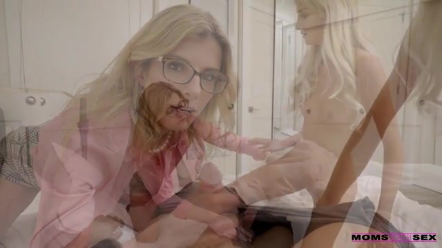 Blonde babe Tallie Lorain is on the phone with her boyfriend and feeling a little bit hot and bothered as they discuss their previous night's sexual encounter. She is interrupted from her masturbation when she hears a weird noise coming from her adopted brother, Codey Steele's, room. When Tallie goes to investigate, Codey tries to tell her there's nothing wrong. Tallie knows better. She flings off the covers from his bed and finds that he has his dick caught in the vacuum cleaner! Tallie goes to get her adopted mom, Cory Chase. Eventually, the two girls figure out that Codey "borrowed" his dad's erection pills and that he's been hard as a rock for five hours.Cory initially tries to tell Codey that he needs to go to the ER. When he refuses, she tells him that he needs to cum right away. The girls step out into the hall to wait it out, but Codey is taking forever to blow his load. Eventually, they go back into the room to see what's taking so long. Cory eventually suggests that since Tallie isn't really related to Codey, she should show some skin to help him out. Tallie agrees after a brief debate and flashes little titties. Cory pops her boobs out, too. Codey still can't cum, so the girls move on to trying their hands at jerking him off. Stroking and sucking together doesn't work, so the girls move on to more drastic measures.Peeling off their clothes, the girls decide to try fucking the orgasm out of Codey. Tallie climbs on first with Cory's help, seating her bare pussy on Codey's fuck stick to ride him. Mommy wants a turn next, so she takes Tallie's place on Codey's man meat and goes to town while Tallie cuddles close behind her to double down on Cora's fun. The girls go down side by side on their knees next so Codey can have a pussy buffet to bang doggy style. Then Tallie lays down so Cora can feast on her greedy snatch as Codey bangs her from behind. Scooting forward, Tallie welcomes Codey back between her thighs as Cora lays down beside her. When it's Cora's turn to enjoy Codey's charms once again, she's all delighted moans as Codey brings her off. He's finally ready to blow his load, so Tallie leans in to make sure she gets her brother's love juice all over her face.