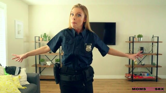 Britney Amber is a hard-nosed cop who doesn't take shit from anyone, including her stepson, Ricky Spanish. She gets her bigtit bod dressed for work, then tells Ricky to stop jacking off and clean up around the house. Unfortunately for Ricky, he ignores his mom's directive. When Britney returns home and finds Ricky right where she left him, including his hand on his dick, Britney knows that the only way to turn her stepson around is to empty his balls completely. Good thing this hot police officer knows just how to do that.Whipping out her handcuffs, Britney ties Ricky up. She already knows his dick is hard as she kneels to start sucking him off. Ricky can't believe his stepmommy has her puffy lips wrapped around his fuck stick He's even more taken aback when Britney starts peeling off her uniform, popping her jugs out of her bra and peeling off her thong. By the time Britney has pushed Ricky onto the couch and climbed onto his cock to start riding him, though, he figures he'd better see this ride through to the very end.Britney gets on her knees on the couch and tells Ricky to fuck her in doggy. When that doesn't empty Ricky's balls, Britney pushes him onto the couch so she can ride his dick. Reverse cowgirl doesn't work and neither does cowgirl! There's only one thing left to do: Britney lays down and spreads her legs so Ricky can pound her while watching those titties jiggle. That finally does it; Ricky nuts all over his mama's stomach and boobs. Now that Ricky has finally blown his load, Britney tells him he can now focus on his homework and cleaning up around the house.