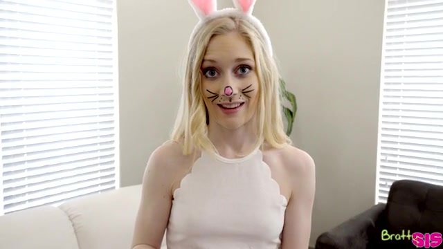 Perky little spinner Emma Stone is into the Easter spirit as she wanders her house dressed as the Easter bunny. When Emma reaches the living room, she finds a note from her mom to let the kids know that she has set up an Easter egg hunt with a pink egg that has some serious dinero. Emma instantly gets to work, searching everywhere for the pink egg. Little does she know that her stepbrother Kyle Mason is watching her search and liking what he sees as her skirt rides up her ass.Eventually Emma notices Kyle and calls him out for his dirty behavior. He tells her that she's wasting her time because he already found the egg with the cash in it. Emma is hard up for cash, so she offers to do whatever it takes for Kyle to give the money to her. He doesn't warn her doing his chores or anything like that, but he could definitely use a handie. Emma is grossed out, but she really wants that cash, so soon she finds herself with her brother's dick in her hands. He is quick to double down on the situation by requesting a blow job for the cash.When Kyle lets Emma know that she's going to have to fuck him if she wants the money, the teen hops onto the couch on her hands and knees to let him do the deed. She didn't expect to like her stepbrother's dick inside her so much, which makes it simple to ride his fuck stick as she continues to earn her prize. Kyle does Emma the favor of making sure she cums before pulling out to jizz all over her belly. Once he's finished, he lets Emma know he hasn't actually found the egg, much to her dismay.