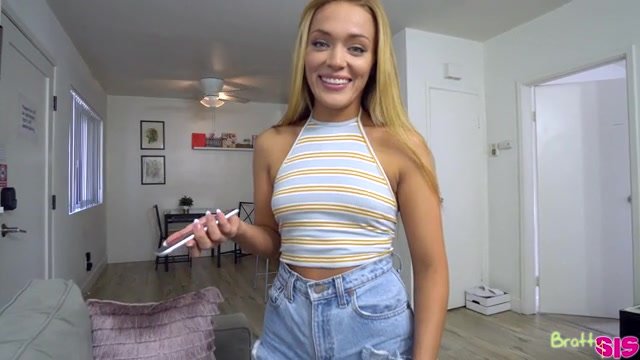 Tony is just settling in for some television time when he hears his stepsister Mylene Monroe talking. He goes to see what she's up to and finds Mylene taking selfies of her ass in a g-string. Tony is super into it, but he ducks out when Mylene notices him and tries to pretend that nothing happened. A few minutes later, Mylene comes out and asks if he'll tell her his opinion of her sexy photos since she's not getting any followers. Tony tries to tell Mylene that he doesn't like to see his stepsis like this, but that her photos aren't very good. Mylene asks if Tony will take some cute and sexy photos of her. He eventually agrees.Mylene doesn't like the first batch, so she pulls her shorts down so that Tony can take some in her thong. Mylene points out that Tony's hand is shaking and he has a boner. She teases him and offers to let him touch it. After a squeeze, Tony tries to back off but Mylene is more interested in having fun. She tells Tony that if he allows her to look at it she might want to touch it. Making good on her promise, Mylene wraps her hands and mouth around Tony's big one so she can sample everything her big brother has to offer.Relocating to the bedroom, Mylene gets on her knees on the bed and peels off her thong to invite Tony inside. Flipping over, Mylene spreads her thighs so Tony can do her while rubbing her clit. Then she hops onto his hardon to ride him in reverse cowgirl as he admires that ass. Turning around, Mylene opens her mouth and goes to town sucking Tony off. She keeps it up until Tony nuts in her mouth and gives her a nice cum shot to lick at like her own personal lollipop.