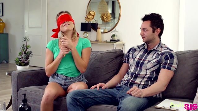 Katie Kush trusts her stepbrother, Brad Stirling, so she comes to him when she needs help. Brad is initially open to helping his stepsis out, but when Katie starts giving details about the sexperiments she wants to try, Brad becomes a little bit more hesitant. Katie insists, so Brad helps her put on a blindfold. Katie then gets Brad to hand her an ice cube that she uses to make her nipples nice and hard. Brad is a bit shy about watching his stepsis in such a position, but Katie really wants his participation.Eventually, Brad gets to his feet and pulls his dick out so Katie, still blindfolded, can wrap her hand around it and start stroking. In response, Katie leans back and tugs her miniskirt up and her panties to the side so she can see what it feels like for Brad to bang her while she's blindfolded. The lack of sight really does enhance all her other senses, but Katie discovers that she wants to watch her stepbro bang her. She looks him in the eye as he stands before her pounding away at that greedy twat, then discards the blindfold entirely.Rolling onto her knees with her torso leaning over the couch, Katie moans long and loud as Brad delivers a proper pussy pounding. When Brad takes a seat, Katie climbs into his lap so she can shove them titties in his face as she rides him. She turns around and plants her feet to ride Brad in reverse cowgirl as her tight twat pulses in delight. When Katie is finally satisfied with her sexperiments, she opens wide and starts sucking until Brad delivers a facial of cum that drips down her smiling mouth.