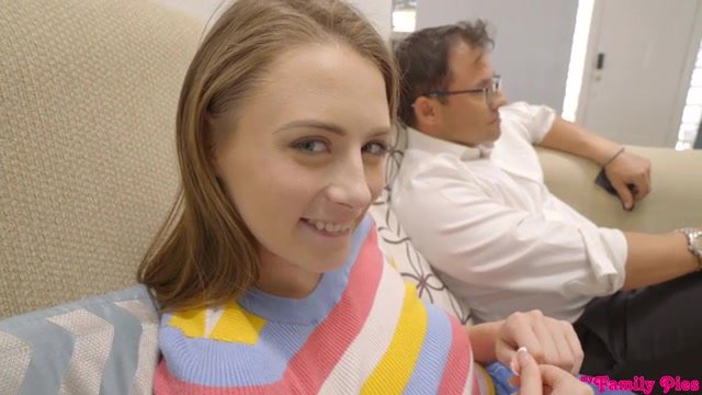Kyler Quinn and her stepbrother Damon Dice are super into each other, but they have to hide their relationship from their parents. They make out in the living room knowing that Damon's dad, Chris Valiant, will be home any minute. Fortunately, they pull away from their make out session just in time as Chris walks through the door! Greeting the kids, Chris takes off to go get comfortable. That gives Kyler the chance to pull Damon's stiffie out of his pants to deliver a handie that once again nearly gets them caught. They hear Chris coming and pull a blanket over themselves in the nick of time.The blanket turns out to be a great idea since it allows Kyler to keep on giving Damon a hand job even with Chris sitting right there in the room. They watch television together for a while with Kyler keeping Damon's desire at a fever pitch. The stepsiblings catch a break when Chris gets up to go get dinner ready. The kitchen may be right beside the living room, but there's enough privacy that Kyler can throw off the blanket, lift up her miniskirt, and urge Damon to sink balls deep into her greedy fuck hole.Kyler and Damon both do their best to hold the moan as Damon dominates Kyler from behind. They eventually change things up so that Kyler is riding Damon's hardon, but the real magic happens once Kyler rolls onto her back with Damon kneeling between her thighs on the couch. He ensures Kyler's satisfaction, then shoves himself all the way inside and lets go to nut a creampie inside his sister. The two rearrange their clothes and casually leave the living room to get cleaned up while Chris doesn't suspect a thing.