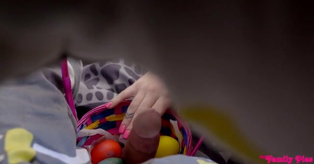 Scarlett Mae and her friend Kiara Cole are getting ready for an Easter party when their giggles attract Ricky Spanish's attention. He bursts into Scarlett's room and tries to ask his stepsister and her friend when the party is starting. Scarlett makes it clear that Ricky needs to get out because he's not invited to anything. Later, Ricky gets back at the girls by coloring his balls like an Easter egg and putting them in a basket for them to lick. He hides beneath a blanket and waits for the girls to come in. They follow the instructions and lick the eggs, but their treat is salty, not sweet.While the girls are discussing the egg, Ricky shifts so his dick is in the basket. When Kiara spies it, she suggests that they take turns sucking it. They both assume that it's Kiara's boyfriend since they've previously discussed having a threesome. Eventually Scarlett wants more, so she pushes her teddy's crotch aside and hops on for a stiffie ride. She keeps it up until she cums, which is when she finally learns that she's been fucking her stepbrother the whole time.The girls retreat to the bathroom where they collect themselves. They may have been fooled, but Ricky's hardon has got them both so horny they start making out! Soon Kiara has her face and fingers buried in Scarlett's juicy twat. They want some D in their lovemaking, though, so they eventually decide to go back to the living room to give Ricky his lucky day. Faced with a threesome, Ricky plays stud to both his sister and her friend until finally blowing his load in his stepsis's fuck hole. She claims she's not on birth control, which freaks Ricky out and leaves both girls laughing that they've gotten the final word in their strangely sexual prank war.