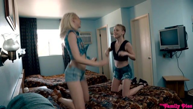 Chloe Cherry and her cousin Hannah Hays have stolen a car and run off to a hotel, but Chloe's stepdad Will Pounder is hot on their trail. He catches up to them and Hannah makes a quick exit before the shit can hit the fan. Chloe is left to face the consequences on her own as Will bends his stepdaughter over his knee and smacks her ass. Then he whips out his hard dick for Chloe to suck and stroke in retribution.Their interlude is briefly interrupted when Chloe's mom, Claudie Monet, stumbles into the hotel room. She's exhausted from walking the whole way, so she falls asleep on the other bed within moments. Claudia's presence is no reason for Chloe and Will to stop, so she hops on Will's fuck stick and starts riding him while they both try to hold the moan. Their fuck fest continues as Chloe gets on her hands and knees so Will can slam into her fuck hole doggy style.When Chloe lays on her back and spreads her legs as far apart as they'll go, Will finally gets her to the point of no return. She can't help moaning aloud as she cums, nor when Will pulls out to cover her belly with his jizz. The noise wakes Claudia, who catches her husband and daughter in the act much to her horrified surprise.