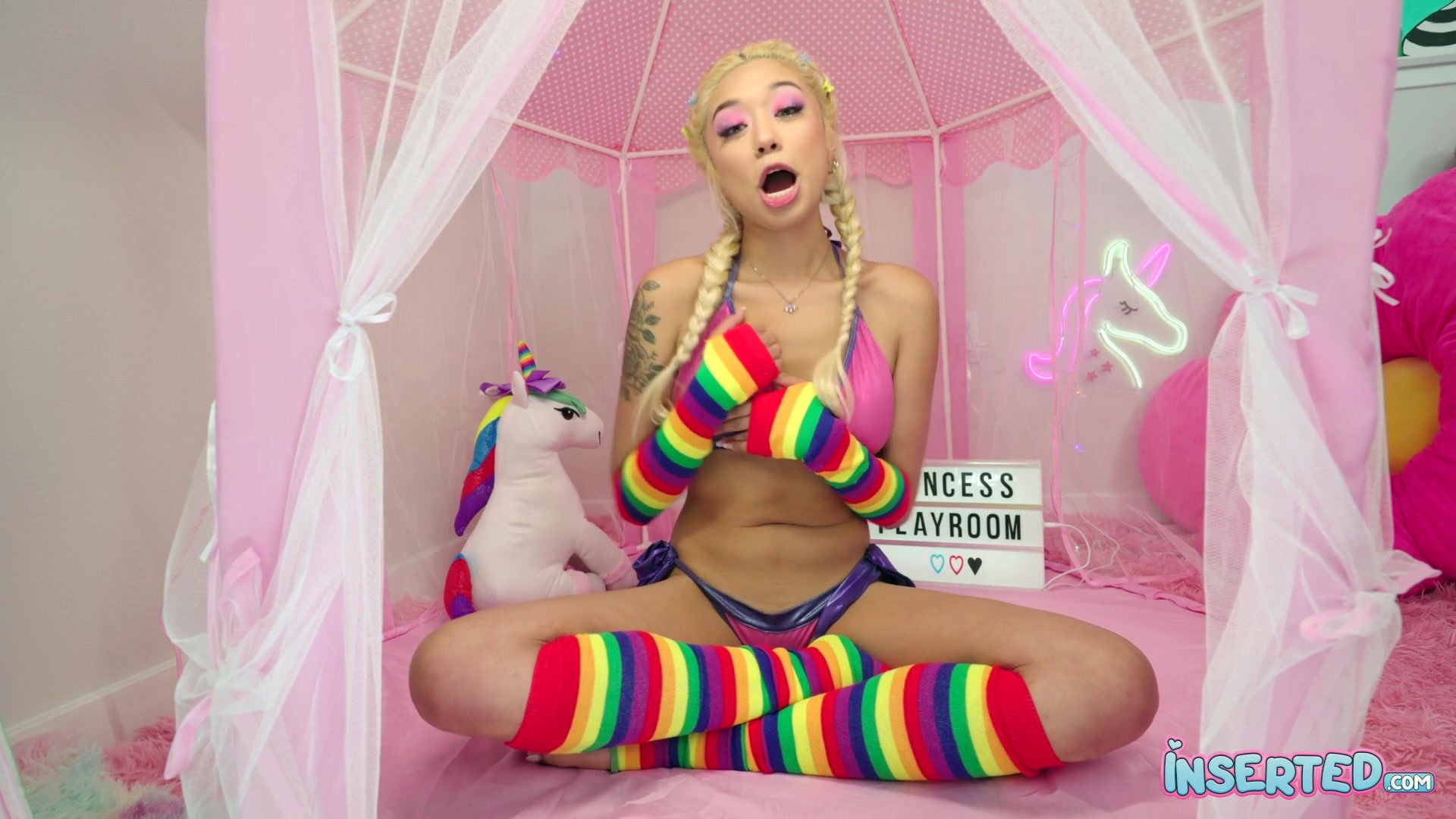 Gia DiBella is so excited to finally have someone in her room with her. She is wearing her favorite color, pink, has a revealing little outfit on, and can’t wait to play with her first hard cock! She starts by making her kitty purr with her fingers and then it’s time for dick in her pink slit and down her throat until she has tears Insertions are fun!