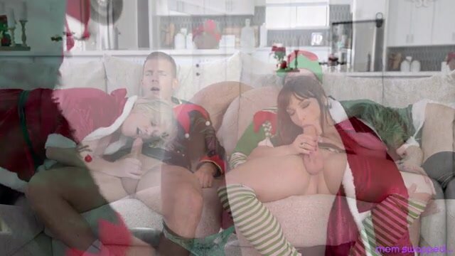 Codey Steele is so sick of his mom Lexi Luna's Christmas spirit. When Lexi invites her BFF Dee Williams and Dee Williams's son Joshua Lewis for a group photo, Codey can't hide his annoyance. Dee Williams gushes about the décor, but Joshua is just as tired of the holiday as Codey. When the moms pull out costumes for the boys to change into, they pout even harder even as they comply.Dressed as sexy Santas, Lexi Luna sits on Joshua's lap and Dee Williams sits on Codey's for the big photo. All the boys can see is the big boobies right in their faces and their bottoms grinding on the goods. Both moms can feel when their friends' sons pop boners. After a brief conference, they decide that they're turned on, so why not embrace the Christmas spirit of giving and do a mom swap?For Dee Williams and Lexi Luna, popping their big boobs out and sucking cock is just the beginning. They both want the cock, and they'll do whatever they need to do to get it! Lexi Luna is quick to hop on Joshua's dick and ride him in reverse cowgirl while Codey fucks Dee Williams in doggy. Then Dee goes for a reverse cowgirl stiffie ride while Lexi Luna turns around and smushes her titties in Joshua's face as she rides him in cowgirl. On their backs with their shoulders pressed together, the moms moan and mewl as Codey and Joshua finish them off one last time. Pulling out, Joshua nuts all over Lexi's face and breasts while Codey gives Dee Williams the same treatment.