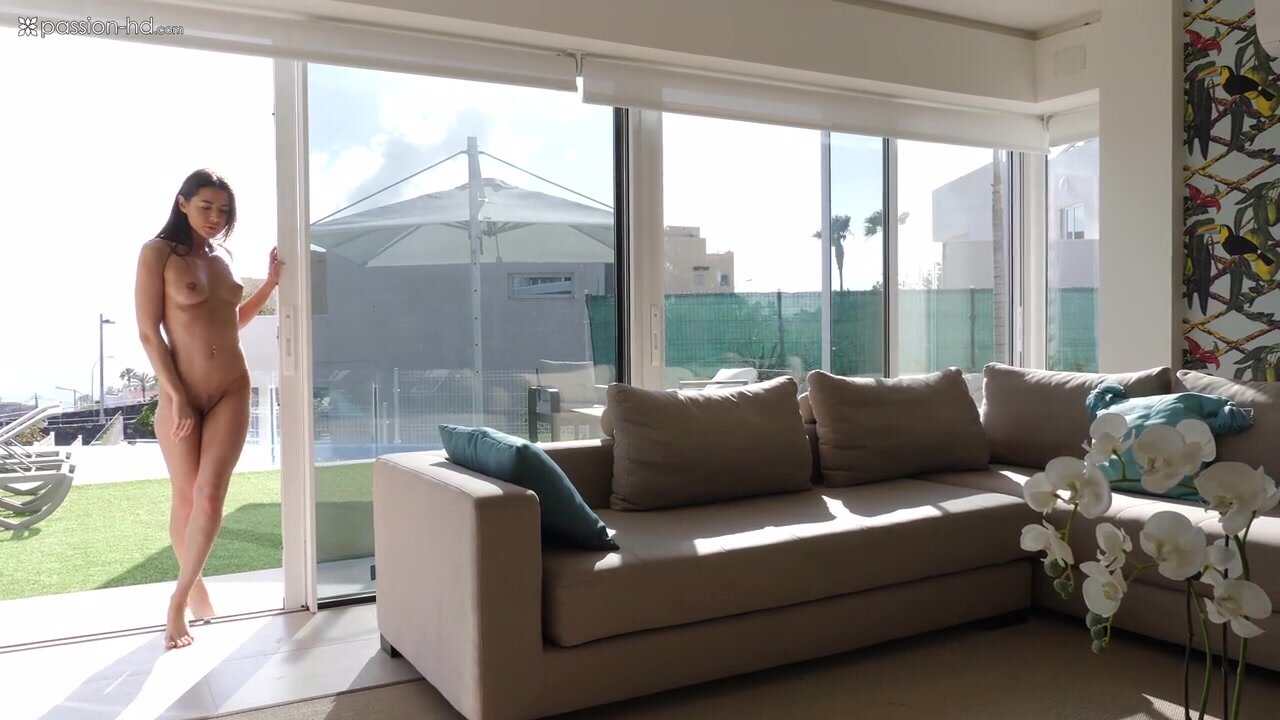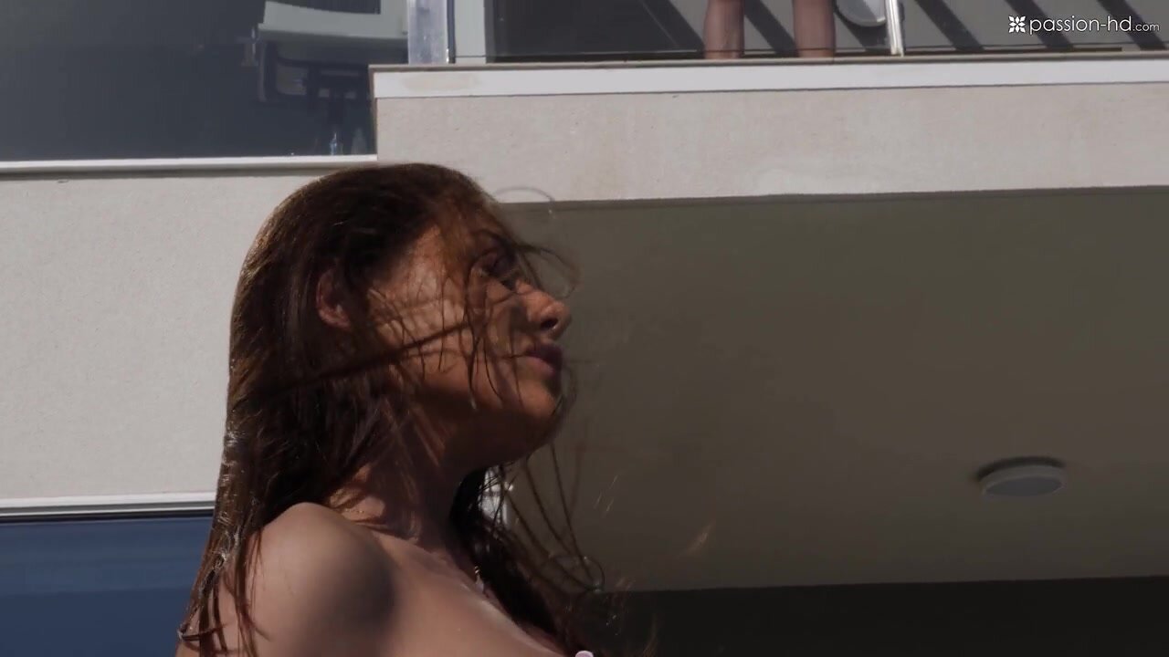 Sybil A oils herself up in pool area and masturbates in the pool to a huge orgasm as Raul watches from above on balcony. After she cums, she looks up and sees his hard dick waiting for her.