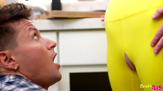 Myra Moans wants her new stepbrother, Jay Romero, but Jay is all kinds of clueless! Myra's comeons become increasingly aggressive. She bumps him, then leans forward with her pussy lips leaking out of a hole in her pants. Jay calls Myra on it, so she has him get a cutting board out for her. When Myra asks if there's anything else Jay wants while he's kneeling in front of her, he wimps out and leaves.Later, Myra corners Jay on the couch with an even bigger hole in a different pair of leggings. When Jay tries to make a point about the leggings being inappropriate by reaching out to touch her pussy, Myra grabs his hand and holds it there. Finally Jay has gotten the hint! Myra crawls forward to suck his dick as a reward and a preview of what else she wants to do.Once Myra has coaxed Jay into eating her pussy, she pushes him down and climbs on top of him to ride him in reverse cowgirl. She's already practically on her knees for a doggy style fuck. Myra isn't finished with her stepbro yet. She crawls into his lap for some cowgirl action that leads Jay to pick her up so he can stand up while banging her. Dropping Myra onto her back, Jay buries himself nice and deep to keep up that pussy pounding until he pulls out to give Myra a cum shot on those hot little leggings.