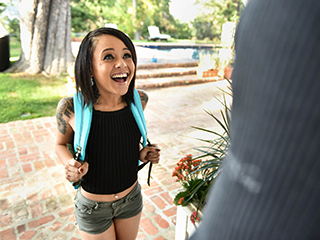 Little Holly Hendrix is too small and little to take any responsibility for anything! She lost her keys because they fell through her tiny hands, and didn’t want her parents to find out. She went over to her cute neighbors house to hide out until they came home so she didn’t have to call them and explain what happened. He let her get comfortable on the couch while he went outside to work out. Hollie happened to be born with a clit in her asshole, which started to pulsate when she saw his hot body. She whipped out her handy dandy ass plug to ease some of the sensation, only to get caught by her neighbor. She had tiny teen anal on her mind. He was confused, but when he got a better look he knew exactly what had to be done. He used his tremendous johnson to loosen up Holly’s back door, and ended up busting that thing wide open! It didn’t exactly solve her lost keys issue, but it certainly took care of her anal fixation and facial cum quota issue. Problem solved!