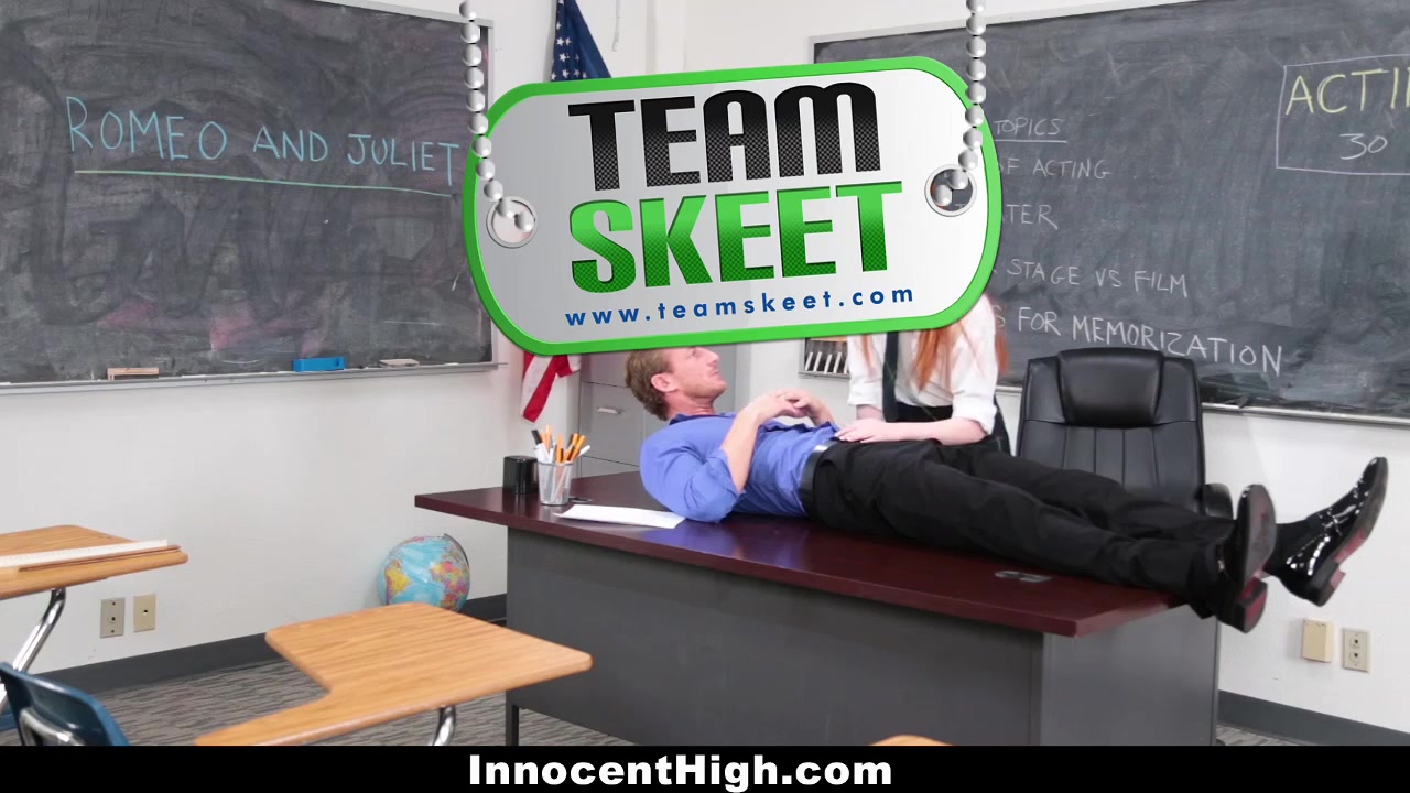 Krystal has been struggling big time learning her lines for the schools rendition of Romeo and Juliet. Good thing her drama teacher came right to the rescue! He saw how tense and nervous he was, so first he helped her relax with some breathing exercises. When she felt calm, she tried again. She still couldnt nail it. What she needed was a real life Romeo to play off of! Her drama teacher laid down on the desk and hoped it would help. She still could not focus on her lines though because she sees his raging bulge. She gives it a kiss and then starts to suck. This practice for a school play quickly turns into a modern day XXX Shakespeare fuck fest. Ramming Krystals tight fire crotch, those moans that came out were not acting. This scene from innocent high left us wondering TO CUM ON HER FACE, OR NOT TO CUM ON HER FACE? THAT IS THE QUESTION!