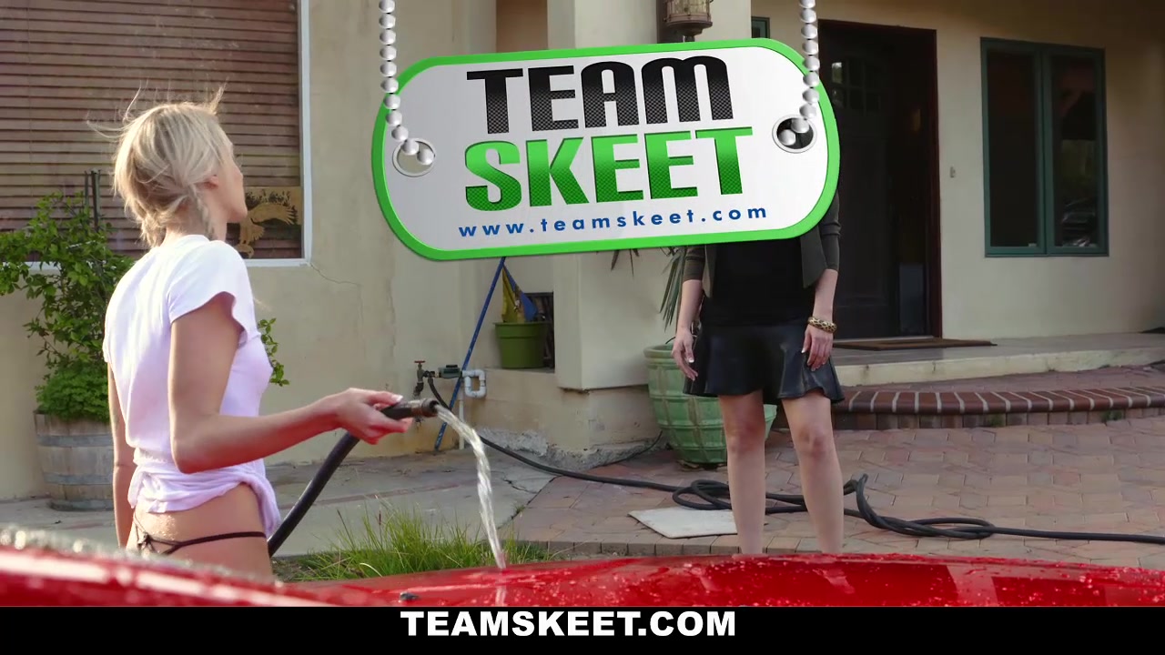 Emma Hix is a hot dumb skank that has absolutely no idea how to wash a car. She clearly isn‘t that interested in actually washing the car. She definitely wants to make herself the slut whore spectacle of the neighborhood. She gets wet and flashes very skimpy panties while soaked in a white t-shirt. Her fine ass and tits are on display for the world to see. While Emma is frolicking in the water, Amber Chase storms on the scene. She immediately tells Emma what a dumb slut whore she is. Angry that she was wasting water and trying to be the town slut, Amber drags her inside the house and slams Emma down. Amber grabs Emma by the hair and gropes her tits while scolding her for being a bimbo. She strips Emma down to skimpy little panties and starts slapping her pussy. Amber spanks Emma a little and then strips her completely naked. Amber parks her pussy on Emma‘s face and demands that she munch on her hair box. Then, Amber gets up and return with a strap on dildo. She is going to show Emma what happens to dumb, slut, whore, bimbos who waste water during sexy car washes.